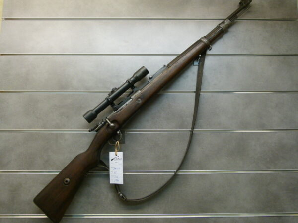 Marque: Mauser Modèle: 98K Calibre: 8×57 IS Montage: à glissière Optique: optique d’époque Caractéristiques: Mono matricule, bon état Référence: AO.198