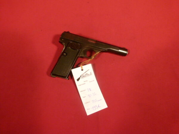 Marque: F.N. Modèle: 1910 Calibre: 380 Caractéristiques: 2 chargeurs, bon état Référence: AP.097