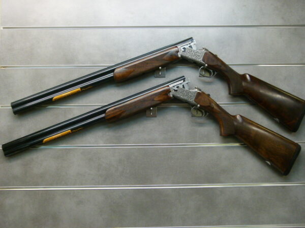 Marque: Browning Modèle: B-525 Hunter 100 anniversaire Calibre: 12 Particularités: paire de fusil 100 ème anniversaire, très beau bois, chokes…